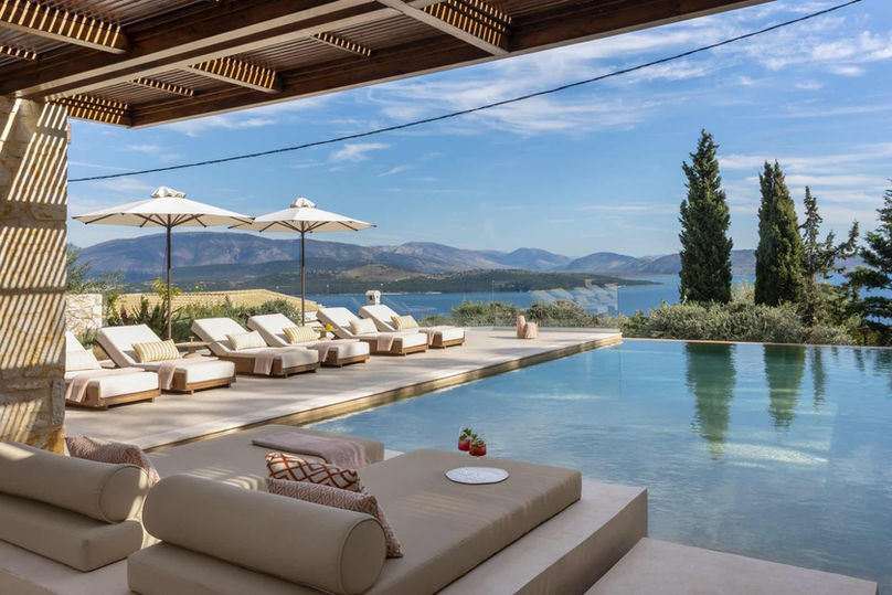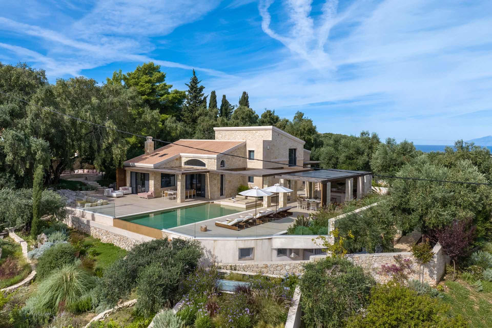 A brilliant home, completely refurbished in 2020, Ines is a unique and rare property that will absolutely satisfy even the most demanding ones. Boasting sweeping views to the bay of San Stefano and the coastline of Epirus and Albania opposite, this luxury villa in Corfu totally encapsulates the most spoiling summer experience for 12 guests. Unfolding in a main house with two floors and an independent guesthouse for 2, Ines has been elegantly decorated with minimal mood and soothing, soft hues of beige and white. Fitted with top quality furnishings, luxurious amenities and cutting-edge equipment, the residence will cater for your every need, whatever that is. The main house hosts 2 double bedrooms and 1 twin, all with private shower bathrooms on the top level and a double en-suite bedroom as well as a twin one on the ground floor. A bright space with a cozy living room, dining area and a fully equipped kitchen opens to the brilliant pool terrace and the large courtyard of the villa. The exquisitely designed swimming pool creates a small, adjacent pond creating a distinctive ambience for guests to relax and unwind in a refreshing ambience. Built-in lounging beds and surrounding sun loungers will embrace you after an invigorating plunge. Several wooden pergolas providing shade to sitting and dining areas blend magically with the natural setting while the outdoor barbeque and open-air bar will invite you to enjoy unforgettable evenings with family and friends.